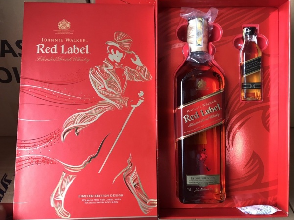 - Nhân dịp Năm mới 2019 , Hãng Rượu Johnnie Walker cho ra mắt Red Label trong Hộp quà Tết sang trọng với 1 Chai rượu 750 ml + 1 chai rượu JW Black label 50ml.